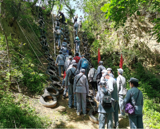活动当天,78位计生特殊家庭老人来到信都区龙山水岸文化园,在40多名志愿者的陪伴下,身穿红军服,重走长征路。大家以饱满的精神,沿着崎岖山路,迈着坚定的步伐重走长征路,追寻革命足迹。
