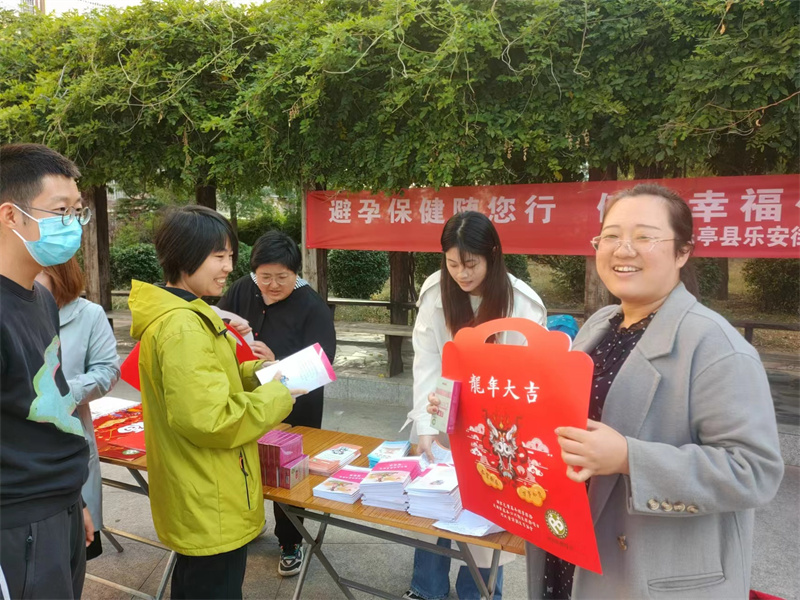 乐亭县各级计生协组成宣传小分队深入广场、街道、商户、社区,向群众宣传适龄婚育、优生优育、性别平等、责任共担等新时代婚育文化,普及生殖疾病防治知识,提高群众生育能力保护、科学避孕的自我意识,指导育龄群众自主知情选择适宜的避孕措施。
