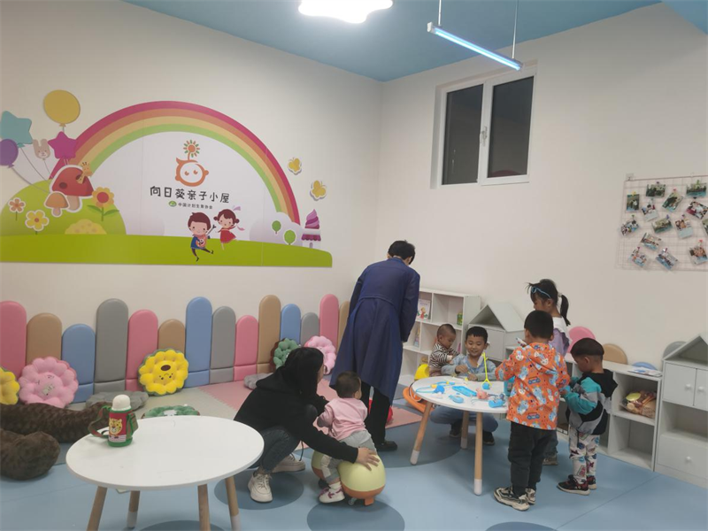 “向日葵”亲子小屋是中国计生协“向日葵计划”实施阵地和亲子服务指导主要场所,旨在通过定期开展免费的亲子活动、父母课堂、入户指导等方式,提升0-3岁婴幼儿家长的科学育儿能力,推进普惠型儿童早期发展公益教育进社区、进乡村。走进“向日葵亲子小屋”石家庄市藁城区项目点,明亮温馨的场景让人眼前一亮:合理的空间布局、童趣的装修风格、孩子们的教具、绘本手工等一应俱全,一物一景皆彰显着爱心童趣。