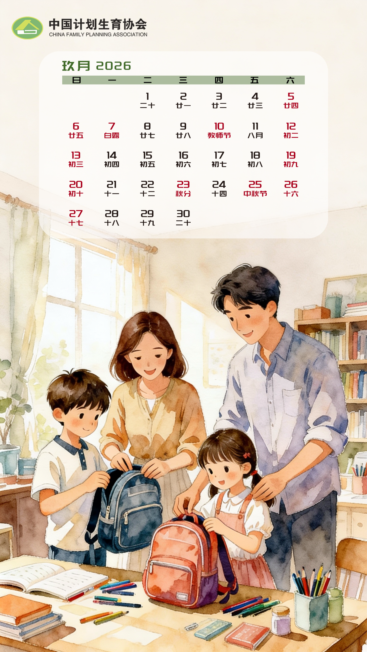 中国计生协2026年原创日历海报上线!
