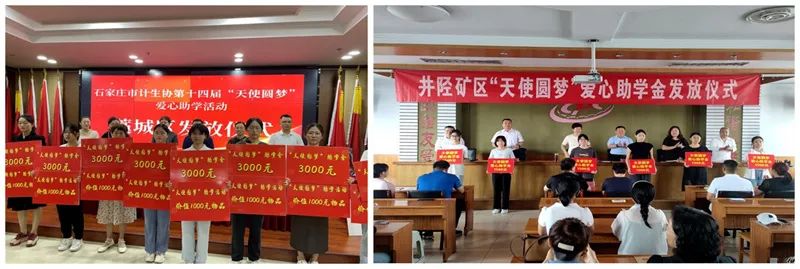 石家庄市计生协开展了第十四届“天使圆梦”爱心助学活动,对部分计生困难家庭女孩进行了救助,并送上助学物品或助学金,中国人寿石家庄分公司也对受资助女孩捐赠了保险。各县(市、区)将助学物品或助学金发放到受助学生手中。