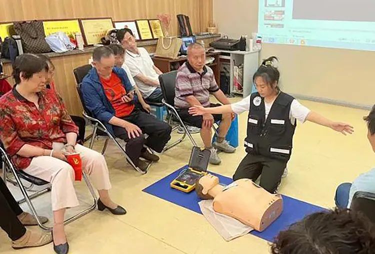 市心理协会急救培训专家梁红玉以易学、实用、有效为宗旨,对高血压、心脏病、脑梗塞等慢性病和常见病的日常诊疗、护理和自我管理进行了专业讲解,同时针对意外伤害进行了心肺复苏+AED使用实际操作和演练培训。