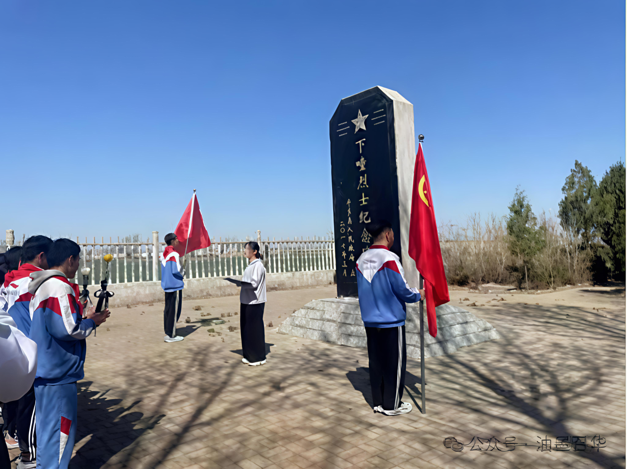 在下町烈士陵园,师生们队列整齐、神情庄重,认真聆听烈士的英勇事迹,深刻缅怀革命先烈的丰功伟绩。在烈士纪念碑前,大家肃立默哀、敬献鲜花,以寄托无限哀思和崇高敬意。随后,同学们庄严举起右拳,重温共青团誓词,铿锵有力的誓言彰显出不忘初心、牢记使命的坚定信念和青春担当。