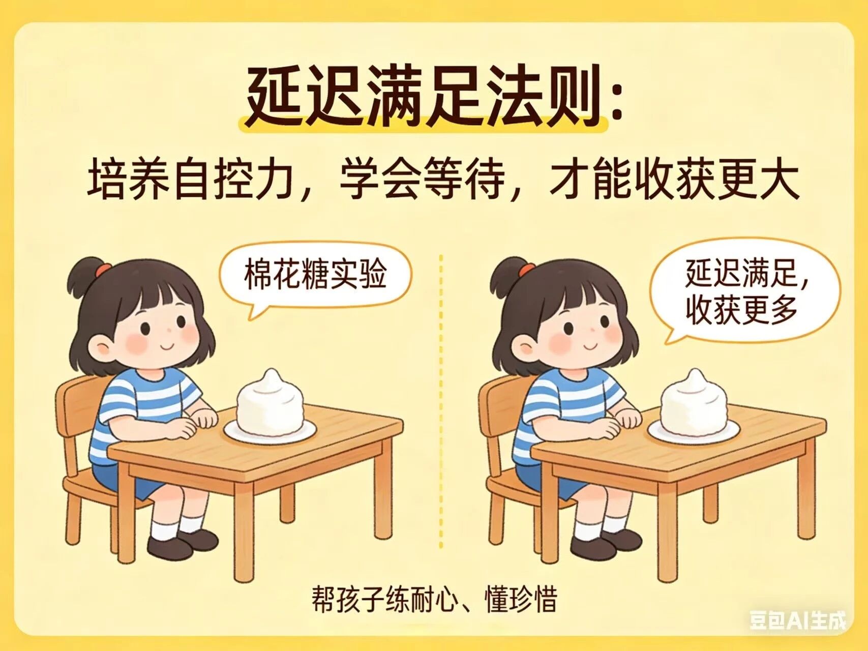 斯坦福大学的“棉花糖实验”发现,能为更多奖励而等待的孩子,长大后在各方面的表现通常更出色。