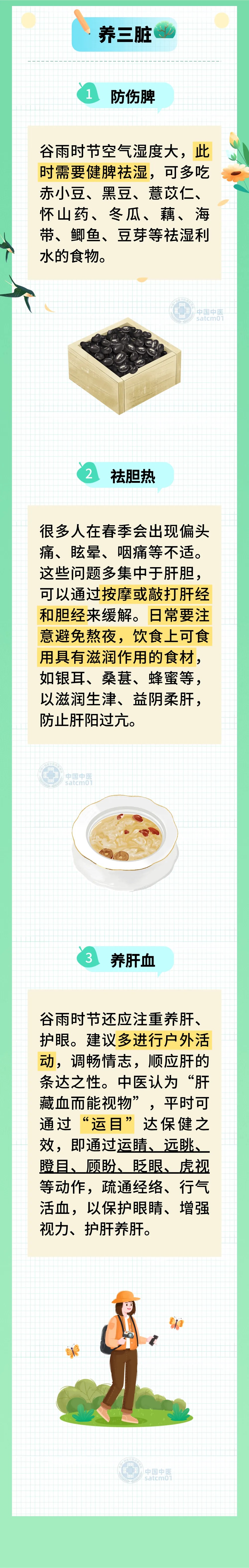 今天,我们迎来了谷雨节气,这也是春季最后一个节气。此时节养生当以“柔肝、健脾、祛湿”为要,以助身心舒畅,安然入夏。