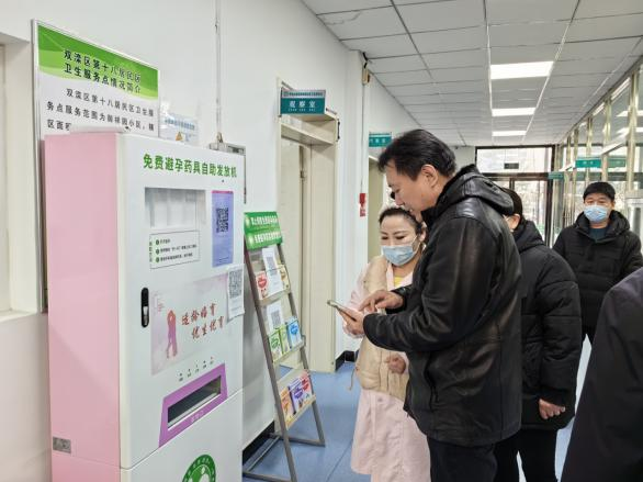 1月10日,张全军在承德市双滦区御祥园社区卫生服务站,现场体验扫码注册河北省计生协信息化平台用户并扫码领取免费药具。