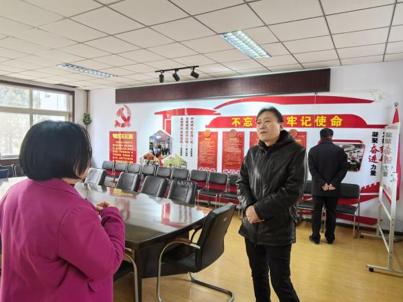 1月10日,张全军在承德市双滦区行宫社区居委会考察基层党建工作阵地,与基层社区党建工作者探讨如何发挥基层计生协会作用,积极融入社区党建工作的路径和模式。