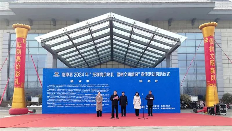 2月6日,邯郸市临漳县计生协联合县委宣传部、县民政局、县妇联在文化艺术中心广场举行了2024年“抵制高价彩礼 倡树文明新风” 宣传活动启动仪式。县领导和有关部门的负责同志分别讲话并宣读倡议书,适龄青年代表作了典型发言。