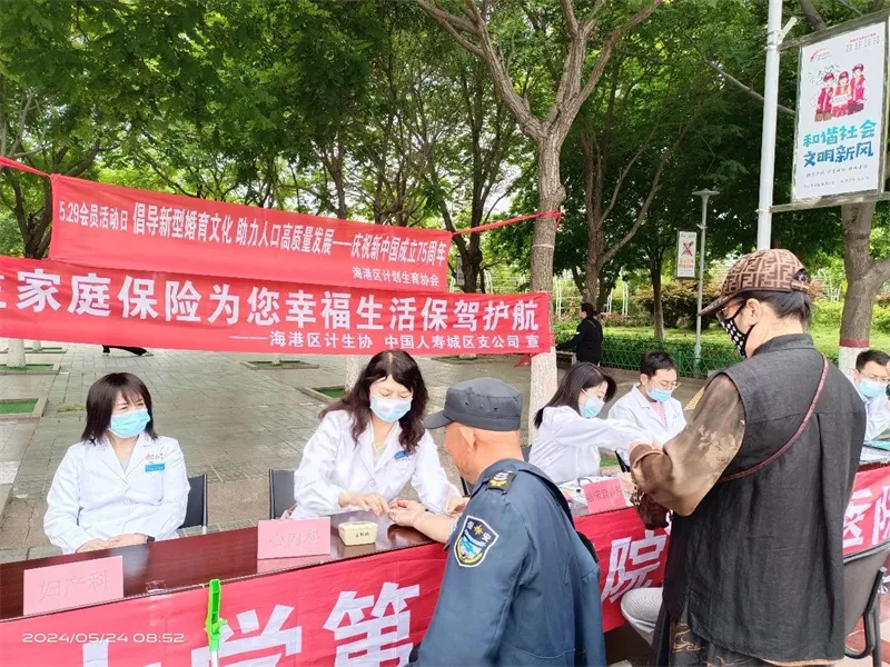 5月24日上午,海港区计生协联合区卫健局、北京大学第三医院秦皇岛医院和中国人寿保险公司秦皇岛分公司,在新世纪公园喷泉广场开展了以“倡导新型婚育文化 助力人口高质量发展——庆祝新中国成立75周年”为主题的宣传活动。