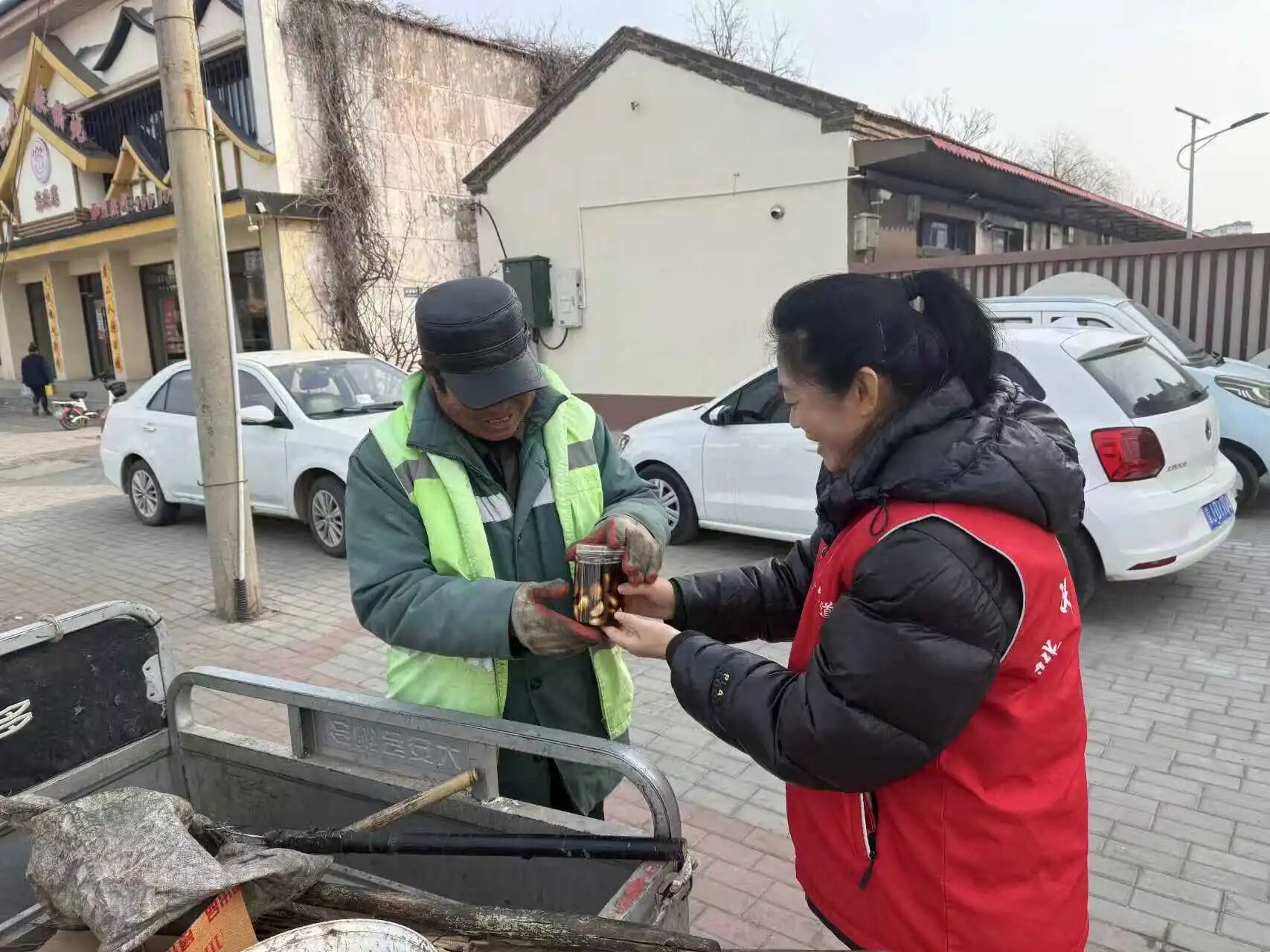 活动现场,社区居民围坐在一起,一边剥蒜、装罐,一边畅谈家常,分享生活趣事和春节筹备计划。不一会儿,一罐罐色泽洁白、颗粒饱满的腊八蒜便制作完成。大家手持自己精心制作的腊八蒜,开心地合影留念,记录下温馨而美好的瞬间。随后,社区工作人员将制作好的腊八蒜送到辖区高龄老人、环卫工人等群体手中,并送上节日问候和美好祝福。