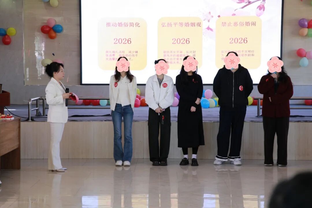 活动现场,主持人引导大家进行自我介绍,鼓励大家快速熟悉彼此。伴随着轻松欢快的音乐,活动正式开始,男女青年各施其才,“击鼓传花”“桃花朵朵开”等多项破冰互动游戏,让原本素不相识的男女青年们逐渐熟悉起来,大家默契合作,在与彼此互动中拉近距离、增进了解,整场活动始终洋溢着欢乐浪漫的氛围。