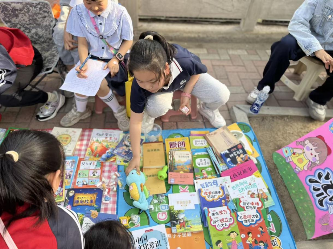 活动现场,孩子们化身“小摊主”,将闲置的绘本、玩具、文具等物品整齐陈列。创意十足的手绘摊位牌、稚嫩而热情的吆喝声,让现场洋溢着童趣与活力。在交易与分享的过程中,孩子们不仅锻炼了沟通表达和社会实践能力,也在潜移默化中传递了“循环利用、绿色环保”的理念。