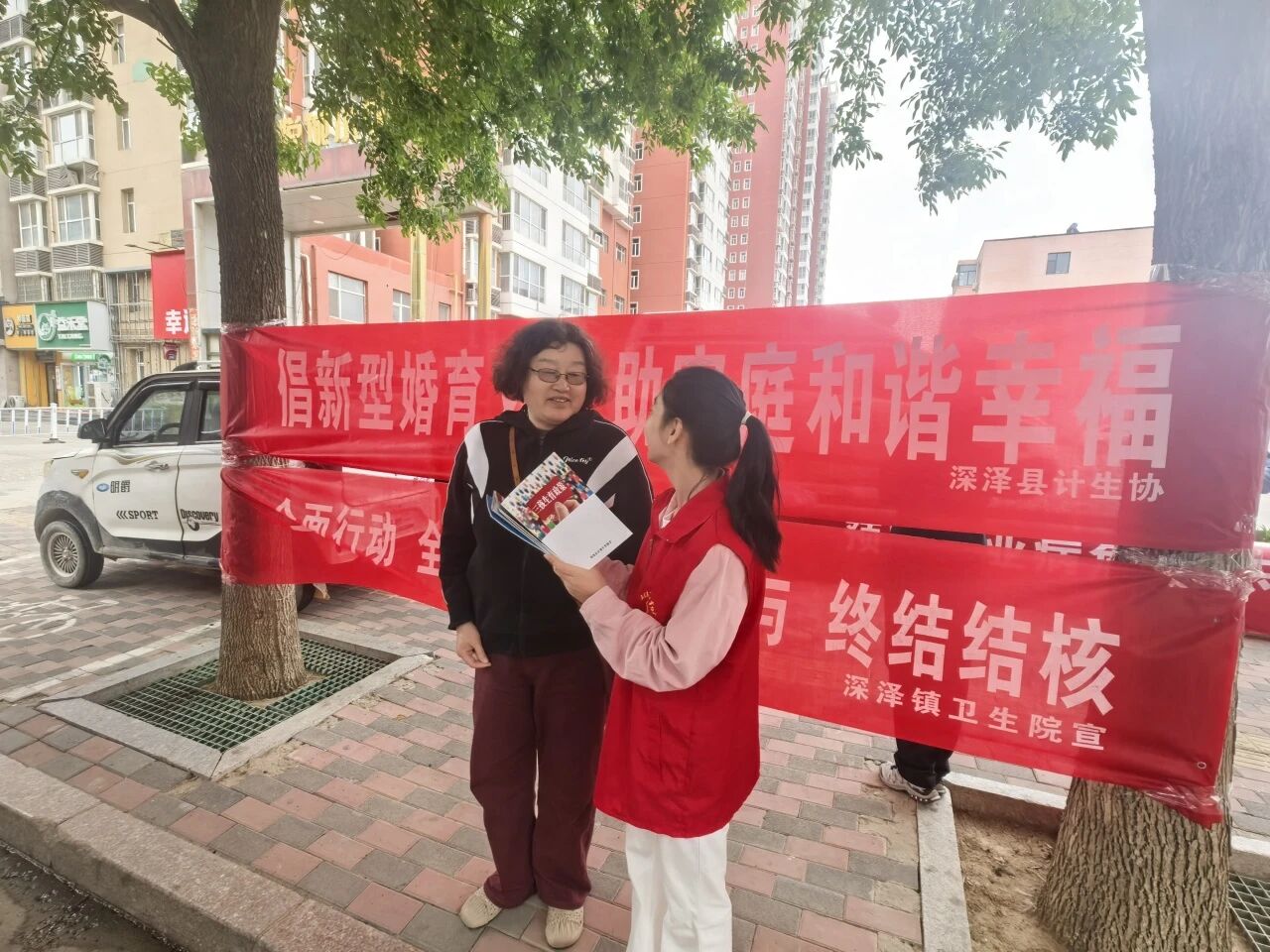 县计生协工作人员与志愿者先后走进石家庄市深泰化工有限公司、人民公园、县数据和政务服务中心、悦城小区。活动现场通过发放宣传资料、现场讲解等方式,向群众宣传新型婚育文化,倡导婚事新办简办、适龄婚育、优生优育、夫妻共担育儿责任等理念,引导树立科学、文明、进步的家庭观和婚育观。同时,医护人员为群众提供免费测量血压、血糖及用药指导等服务。