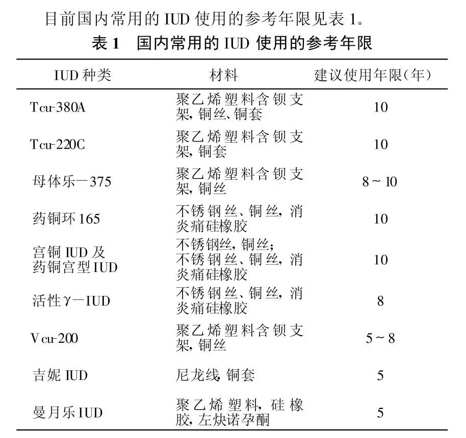 宫内节育器因类型不同,使用年限也有所差异,一般为5~10 年。